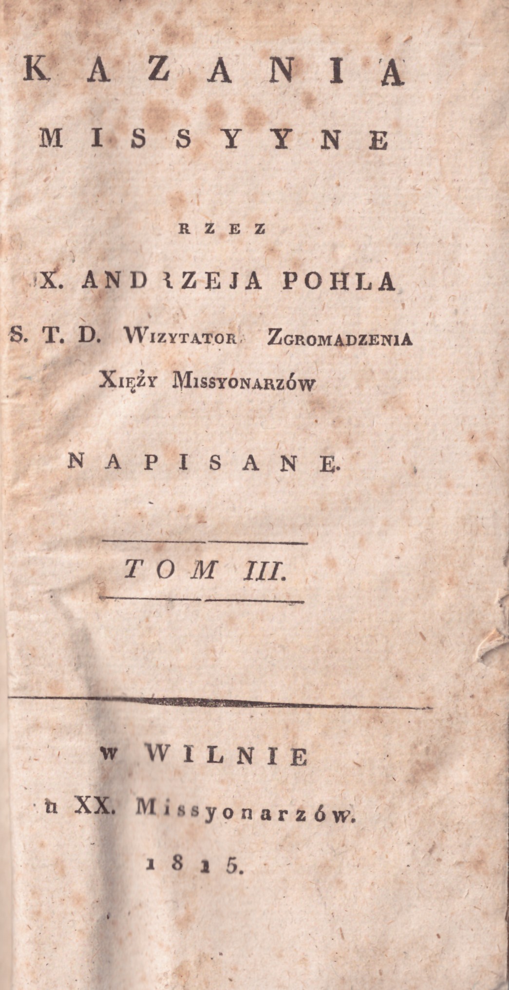 Kazania missyyne / przez Andrzeja Pohla napisane. Tom III.