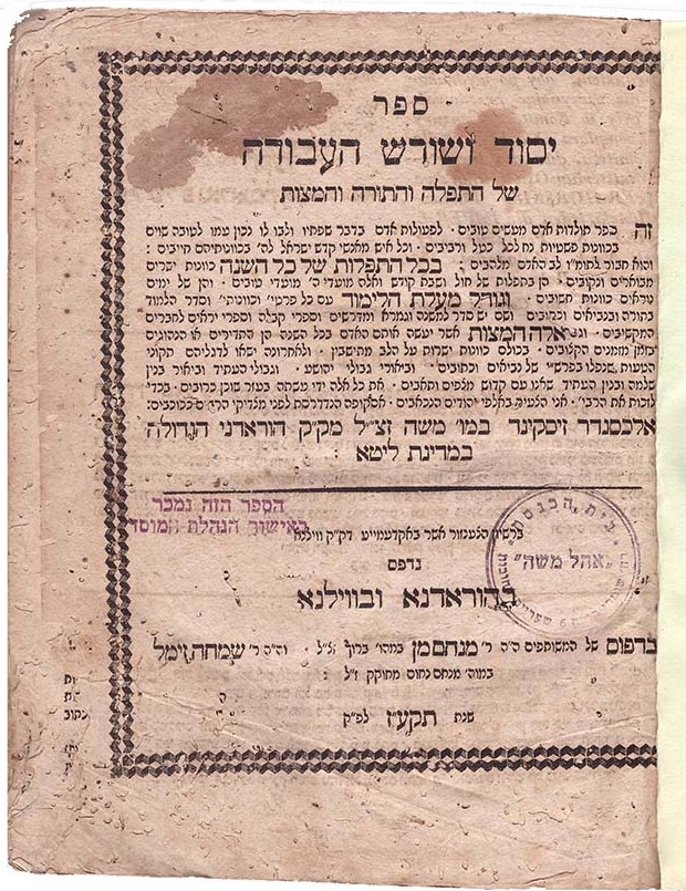 Alexander Susskind (Zusskind) ben Moses (+1794) Sefer Yesod VeShoresh HaAvodah