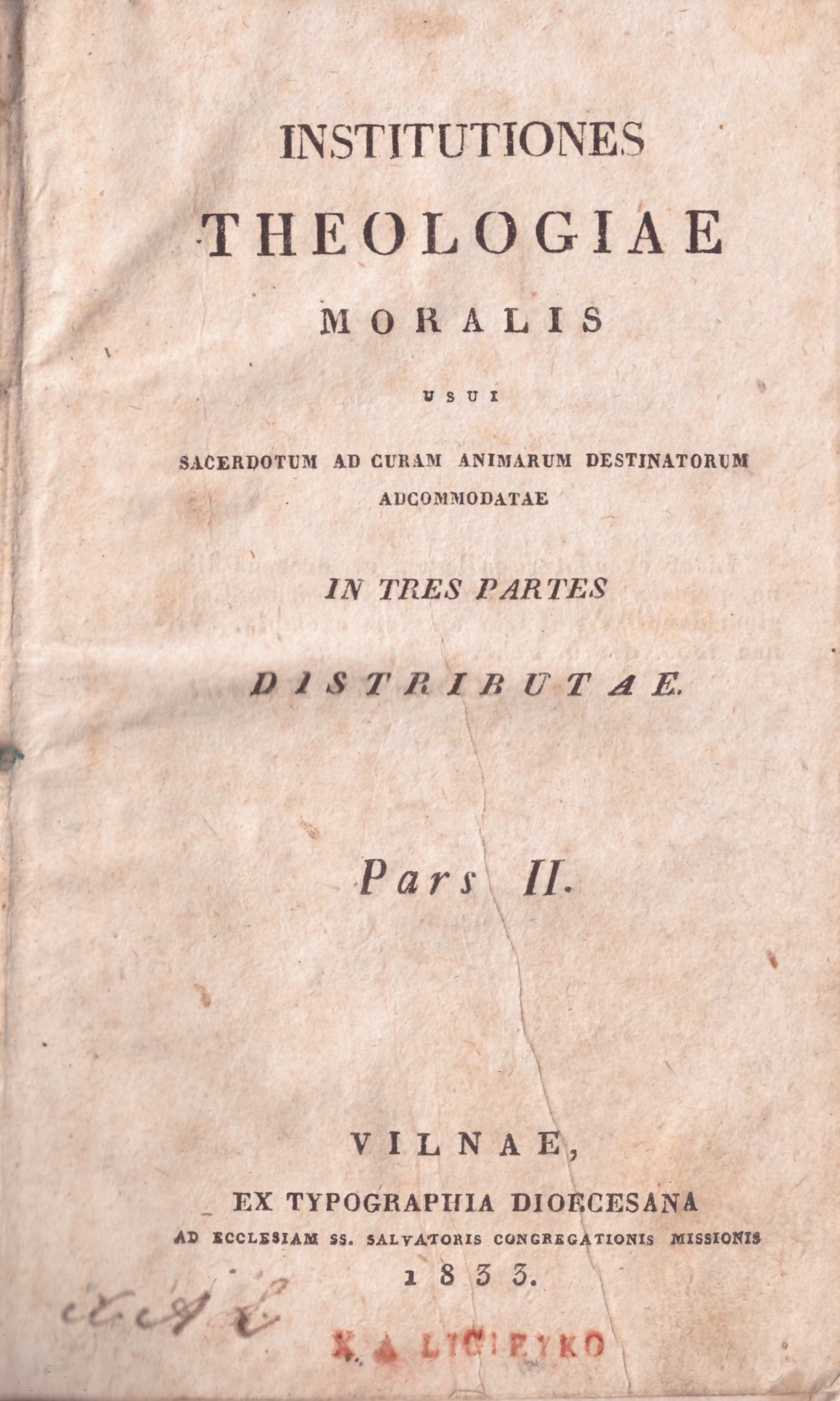 Vilnae, Ex typographia dioecesana ad ecclesiam SS. Salvatoris Congregationis Missionis, 1833,