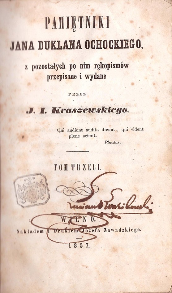Pamiętniki Jana Duklana Ochockiego : z pozostałych po nim rękopismów przepisane i wydane / przez J.I. Kraszewskiego T. 3.