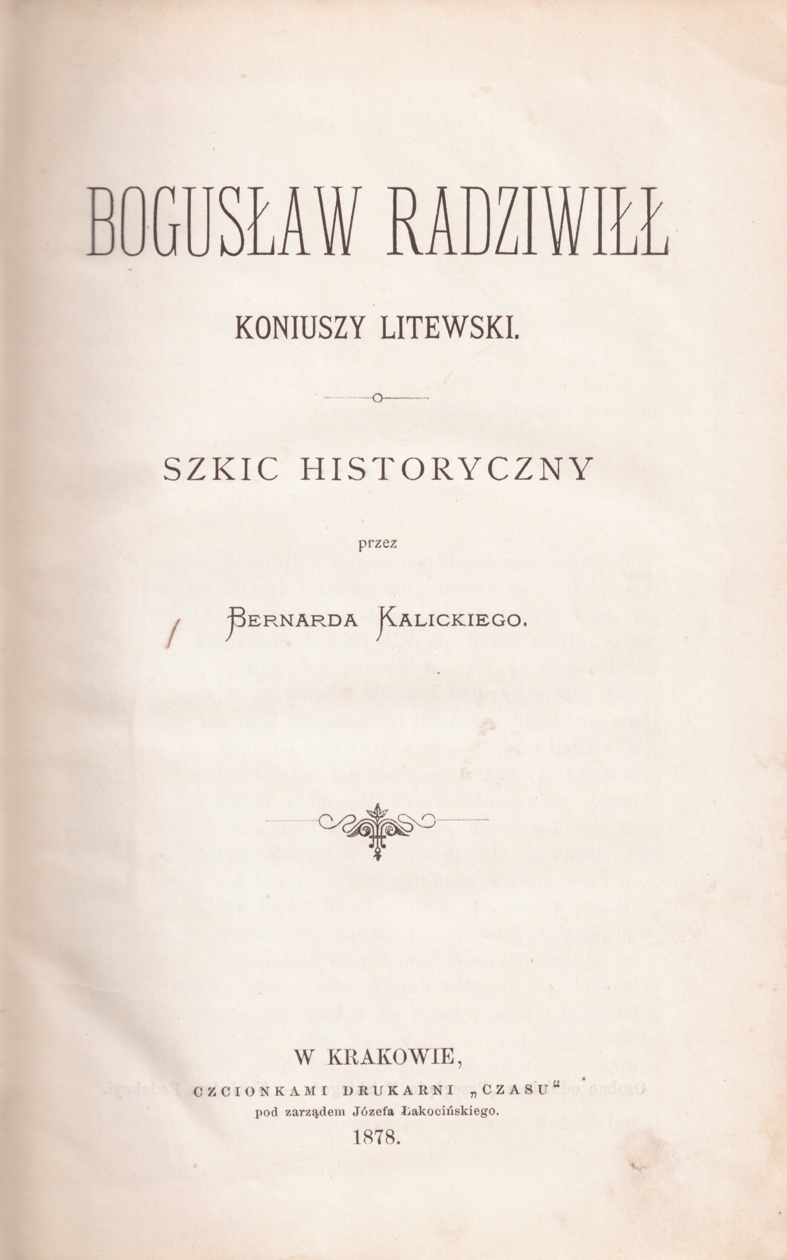 Bogusław Radziwiłł, koniuszy litewski : szkic historyczny / przez Bernarda Kalickiego
