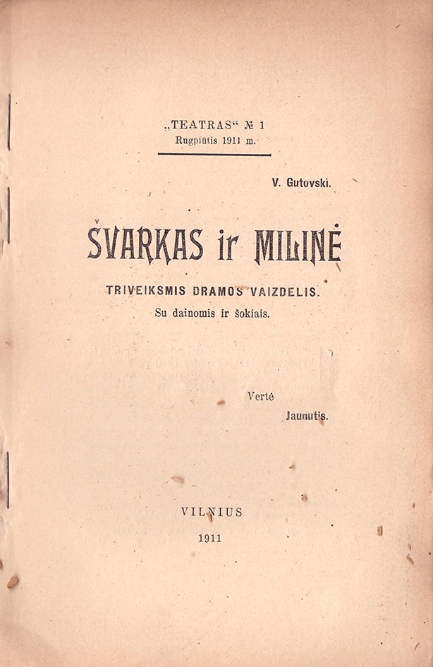 Vertėjas: Strazdas-Jaunutis, Jonas (1886–1972). [Vilnius : J. Strazdas-Jaunutis], 1911 (Vilnius : Strazdų ir Vėgėlės raidės ir rinkimas), 81, [7] p. : vinj., nat.