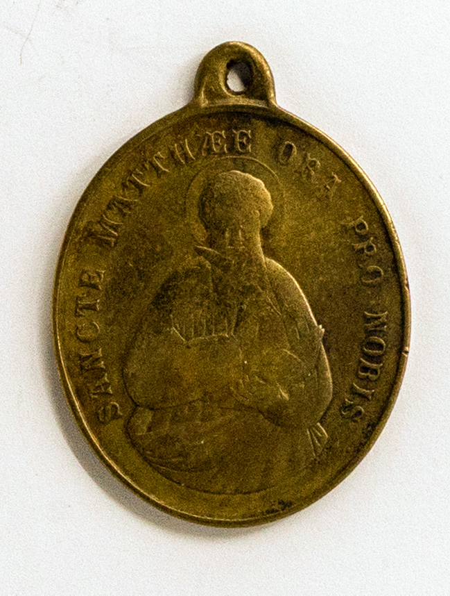 Religinis medalikėlis, skirtas 1877 m. pastatytai Rokiškio Šv. apaštalo evangelisto Mato bažnyčiai. Lietuva. 1877 m. Averse Šv. apaštalas evangelistas Matas ir aplink viršuje – įrašas: „SANCTE MATTHÆE ORA PRO NOBIS“. Reverse bažnyčios bareljefas ir aplink – įrašas viršuje: „RAKISZKI A·D·1877“. Bronza. Skersmuo – 40 x 29 mm.